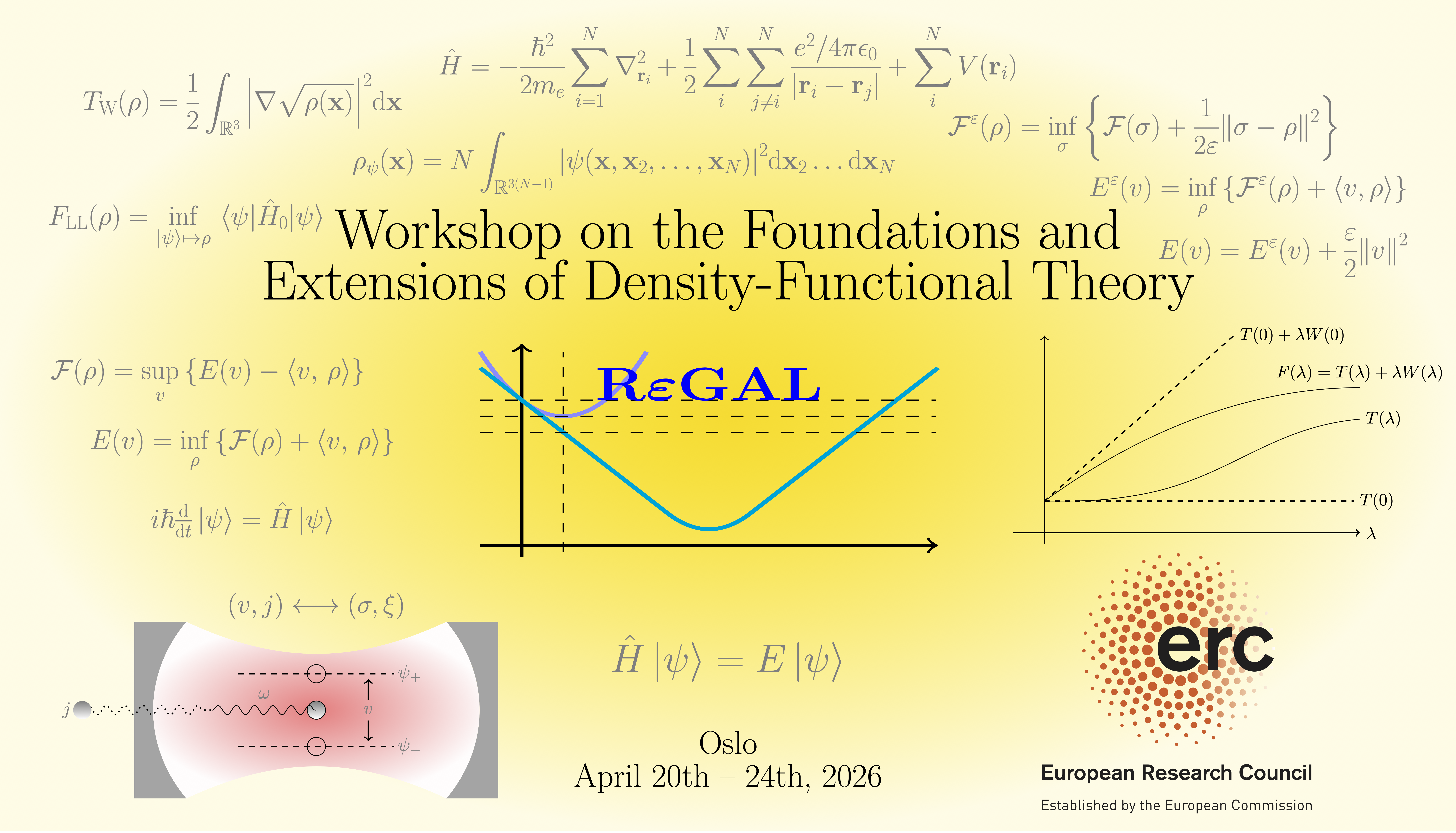 The REGAL project is happy to announce a workshop on the mathematical aspects of density-functional theory (DFT). The workshop will take place at Oslo Metropolitan University (OsloMet), campus Pilestredet, from the 20th to the 24th of April 2026.